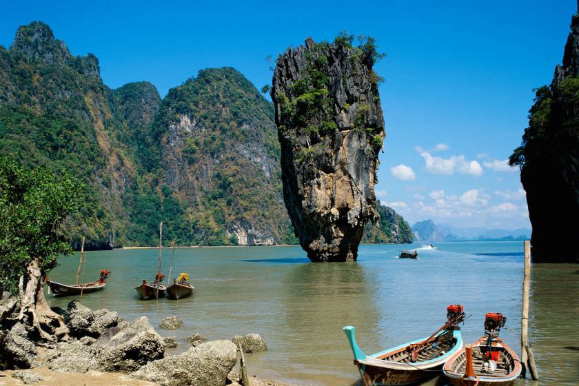 تور یک روزه به جزیره جیمز باند: سفر با قایق با خلیج فانگ نا. بازدید از جزیره جیمز باند و گرفتن عکس های یادگاری. کایاک سواری در غارهای آهکی و تماشای مناظر طبیعی خیره کننده