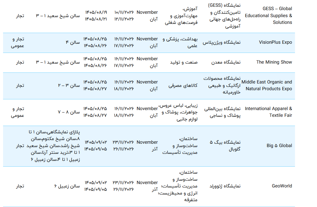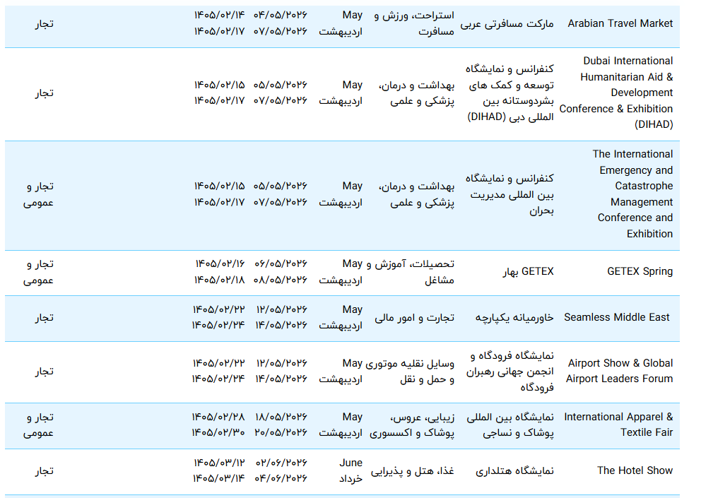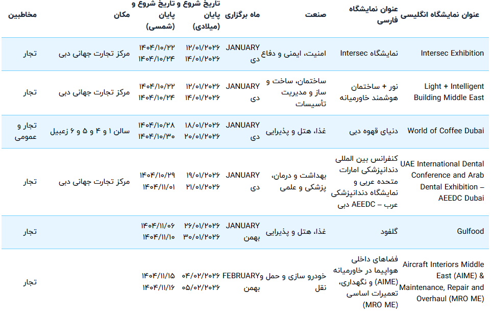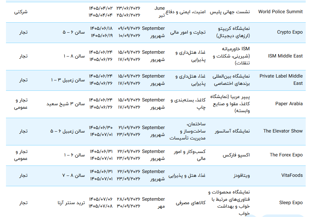 لیست و تقویم نمایشگاه های دبی 2026