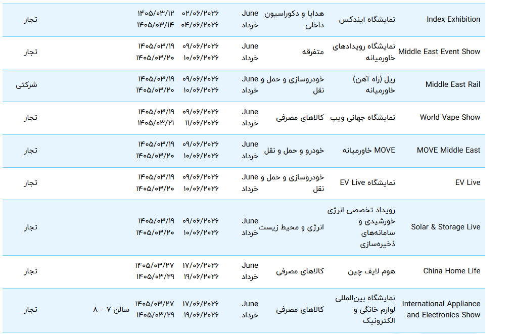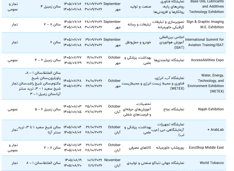 تقویم نمایشگاه های دبی 1404 و 1405