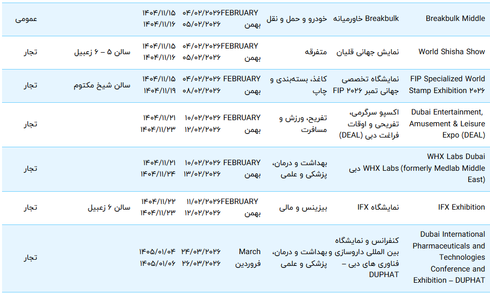 نمایشگاه های دبی ویژه 2026